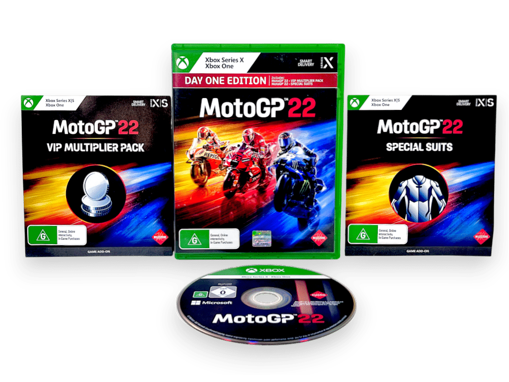 RARE Xbox Series game in mint condition: MotoGP 22: Day One Edition (Xbox One / Series X). This preowned game is in pristine condition and complete with case + cover + voucher cards (codes may or may not have been redeemed but these are not required for gameplay) + game disc.
