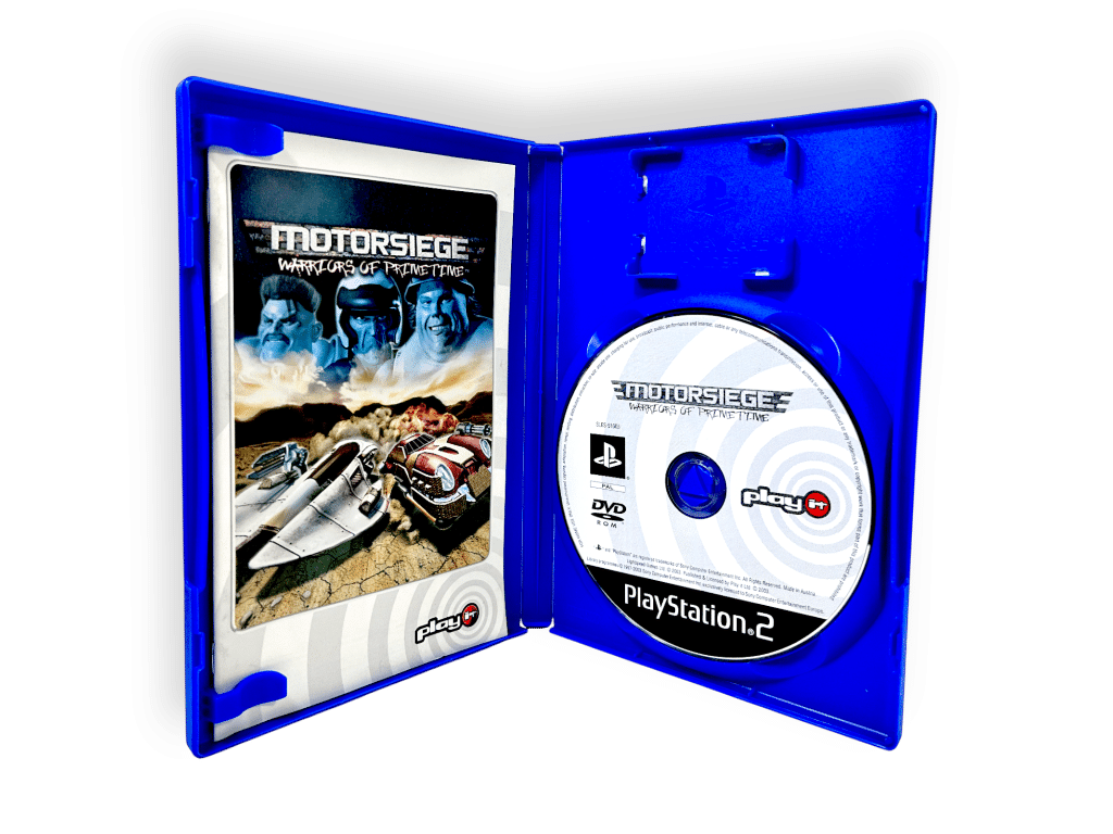 Motor Siege: Warriors of Prime Time for PlayStation 2 blends high-octane vehicular combat with futuristic sports arena action. Players pilot heavily armed vehicles in intense, fast-paced battles across varied arenas, using strategy, speed, and firepower to survive. Combining shooting, racing, and power-up elements, this game delivers explosive gameplay for fans of competitive vehicular mayhem.