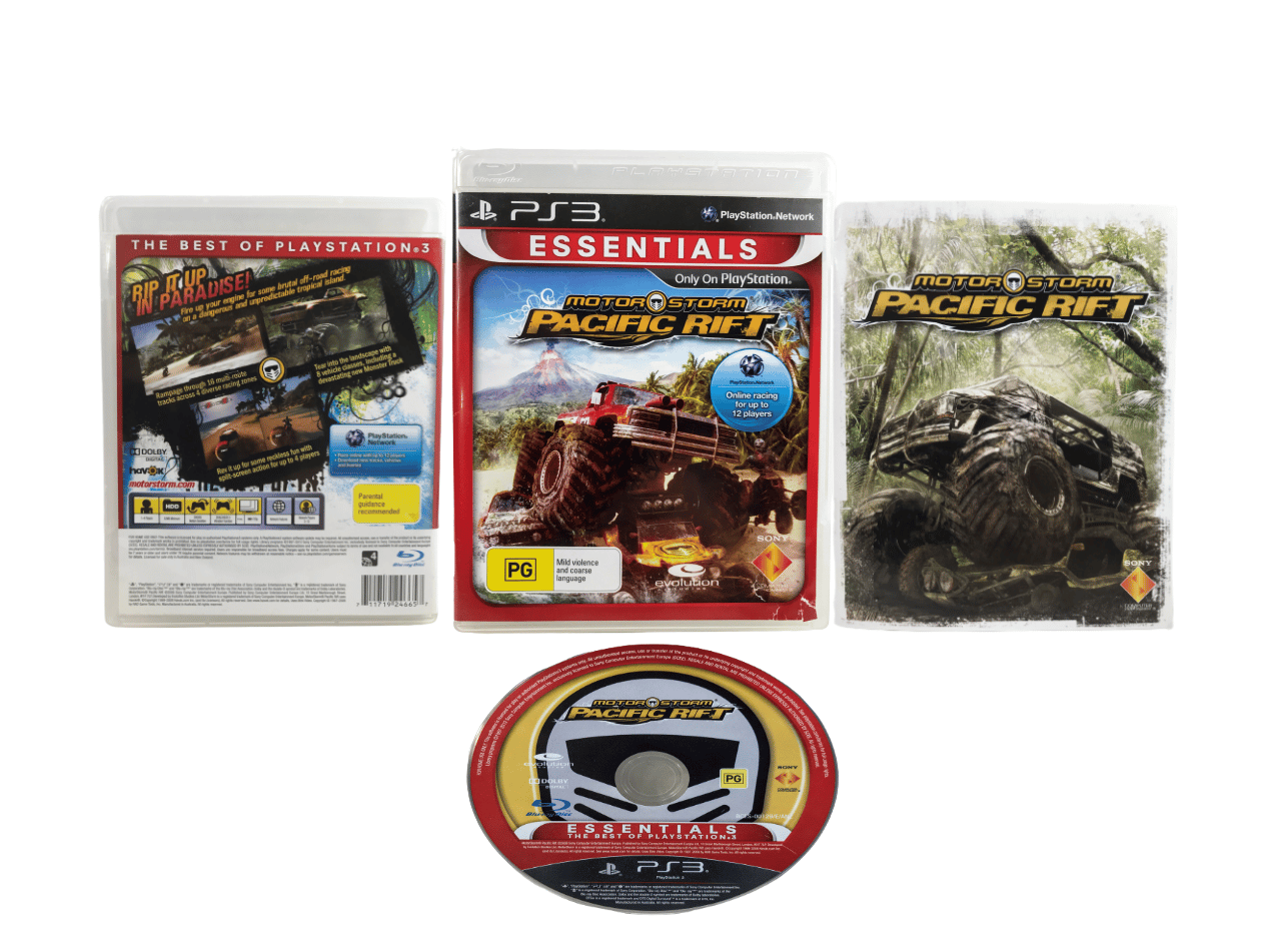 Genuine PlayStation 3 Essentials Edition in Excellent Condition & 100% Complete with Contents: MOTORSTORM PACIFIC RIFT / Motor Storm Pacific Rift for SONY PlayStation 3 / PS3. This preowned game comes complete with case, cover, manual / booklet, and game disc.