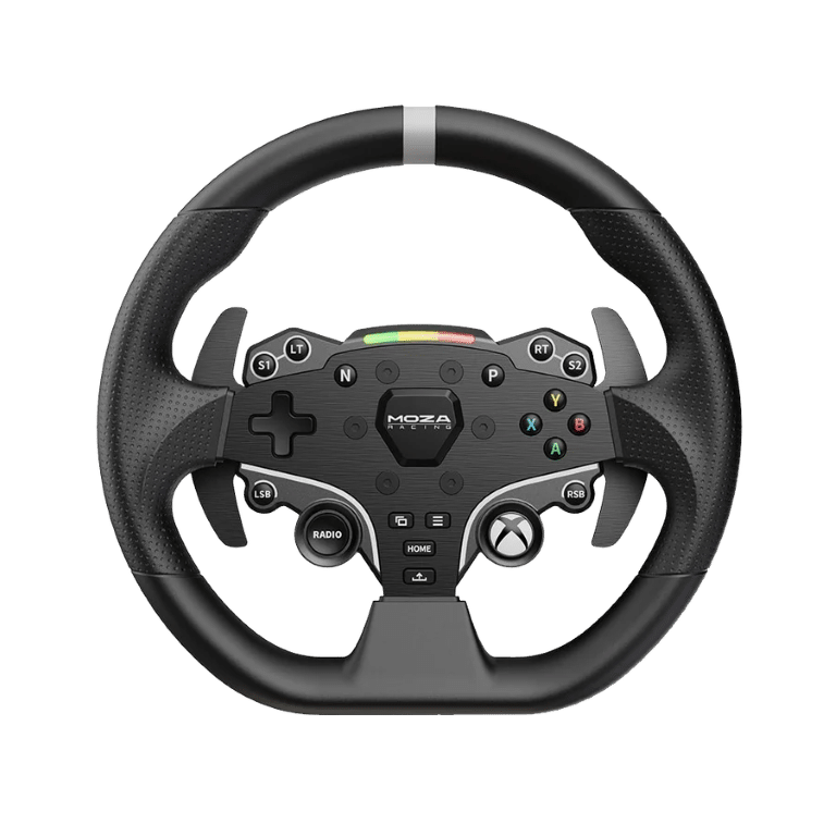The MOZA ESX Steering Wheel for Xbox combines official Xbox licensing with MOZA Racing’s direct drive technology to deliver an unparalleled racing experience. Designed with a solid aluminum alloy rim and non-slip, sweat-proof ISF PU grips, it ensures maximum durability and comfort during intense races. The wheel features 22 customizable buttons for complete control and on-the-fly adjustments, while the fully adjustable RPM LED lights add a dynamic touch to your setup. With the industry-leading MOZA quick-release system, swapping wheels is fast and effortless, making this the ideal choice for dedicated racers.