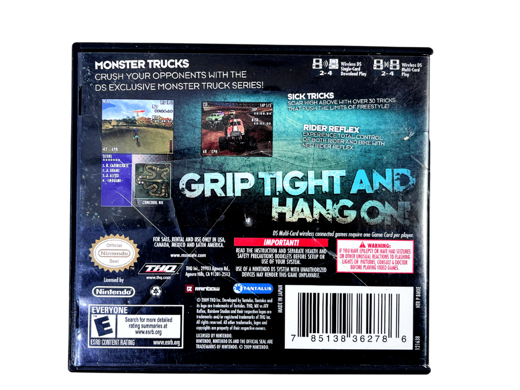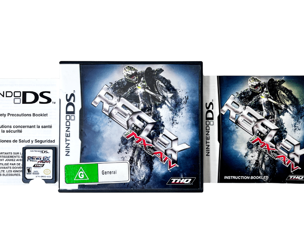 MX vs ATV REFLEX (Nintendo DS) *TIDY + COMPLETE*. This preowned Nintendo DS game is in excellent condition and comes complete with case + cover + manual / booklet + game cartridge. Case has some spots of laminate wear on the front, but this is purely cosmetic, and each of the contents inside are superb.