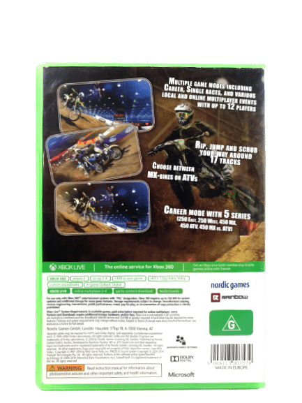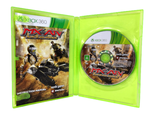 Good condition & 100% complete with contents: MX vs ATV SUPERCROSS / MX vs. ATV Super Cross. This preowned game comes complete with case + cover + manual / booklet + game disc. Some light superficial markings / cosmetic scratches, but these are very minor imperfections which do not affect game play in any way.