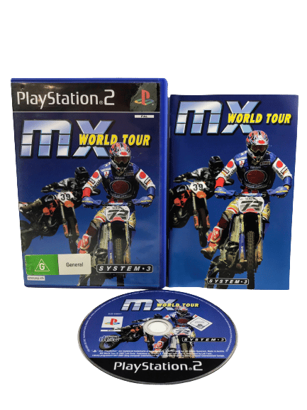 Good condition & 100% complete with contents: MX World Tour for SONY PlayStation 2 / PS2. This preowned game comes complete with case, cover, manual / booklet, and game disc. Some light superficial markings / cosmetic scratches, but these are very minor imperfections which do not affect game play in any way.