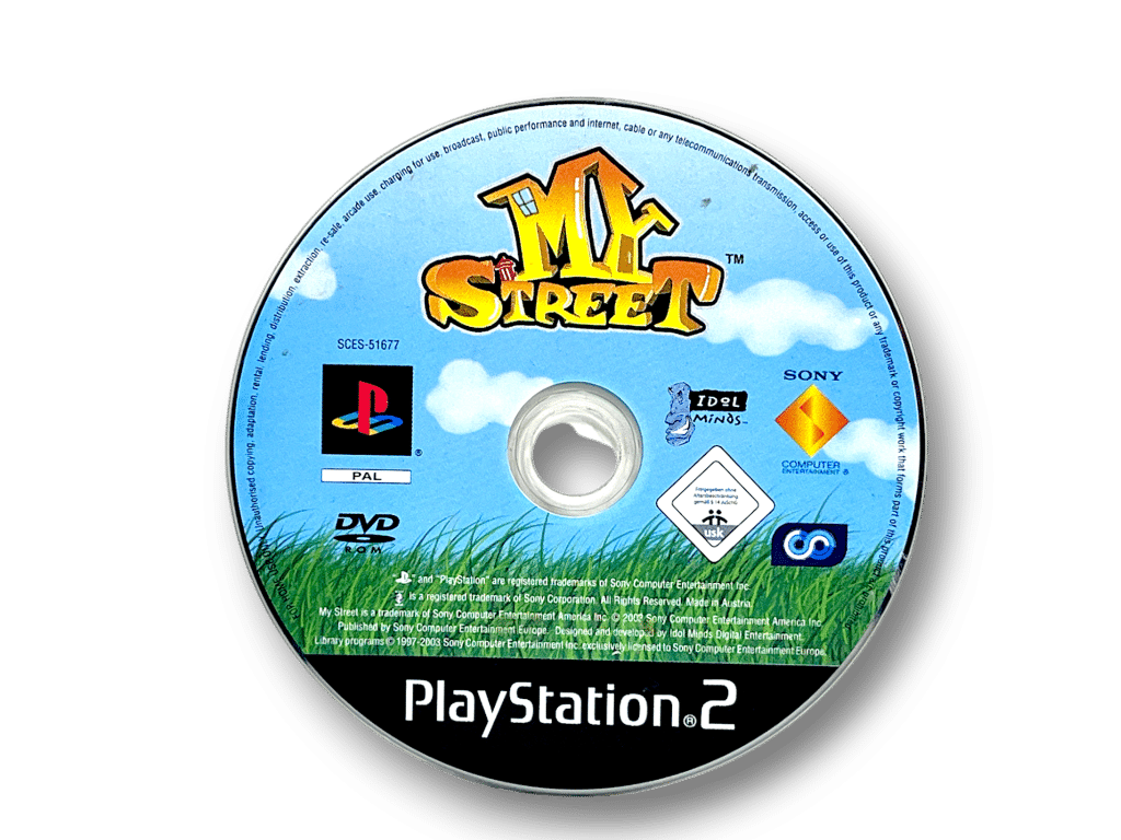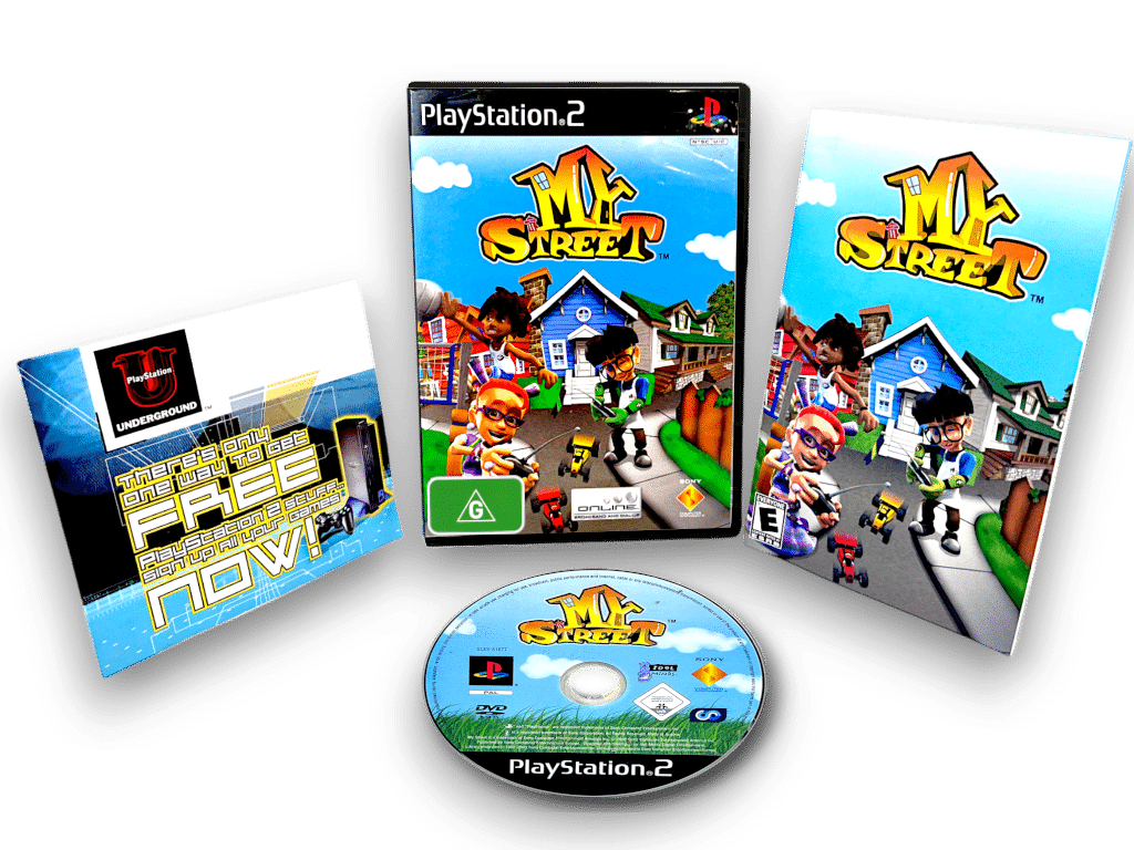 My Street SONY PlayStation 2 game. This PS2 game is in excellent condition and complete with case + cover + promo card + instruction manual (each in Mint Condition) + game disc. Case is a Black DVD case. Faint scratches on disc, but these are purely cosmetic, and all other contents are pristine. A tidy and complete collector’s item. GENUINE PAL REGION (NZ REGION) game disc to play perfectly in New Zealand PS2 consoles.