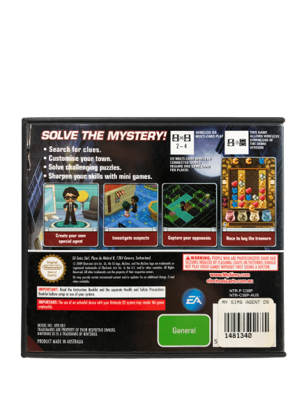 RARE FIND: MINT Condition & 100% complete with contents: MySims Agents (My SIMS Agents) for NINTENDO DS. This preowned game is in pristine condition – a very tidy and complete collector’s item. Refer photographs.