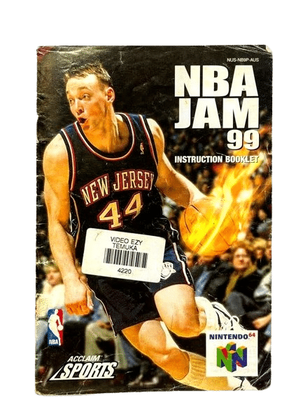 NBA JAM ’99 for Nintendo 64 with accompanying Instruction Manual. This preowned authentic Nintendo 64 Game is well used as pictured, but still playing perfectly well. Booklet in used condition with paper wear pictured. Booklet is complete.
