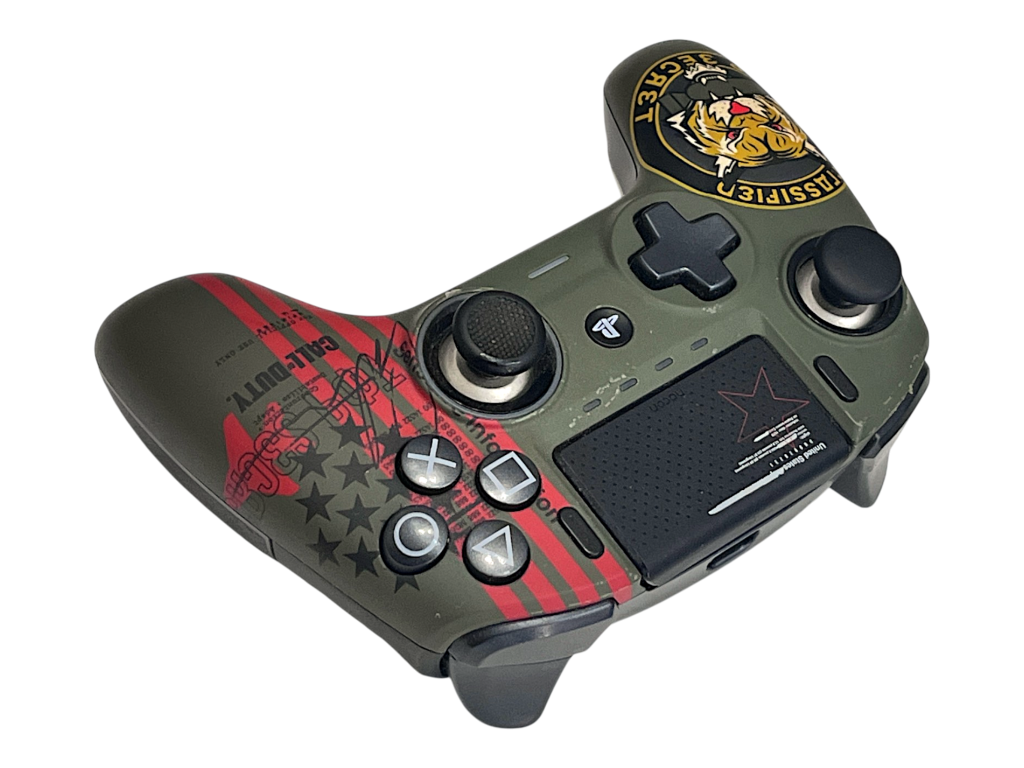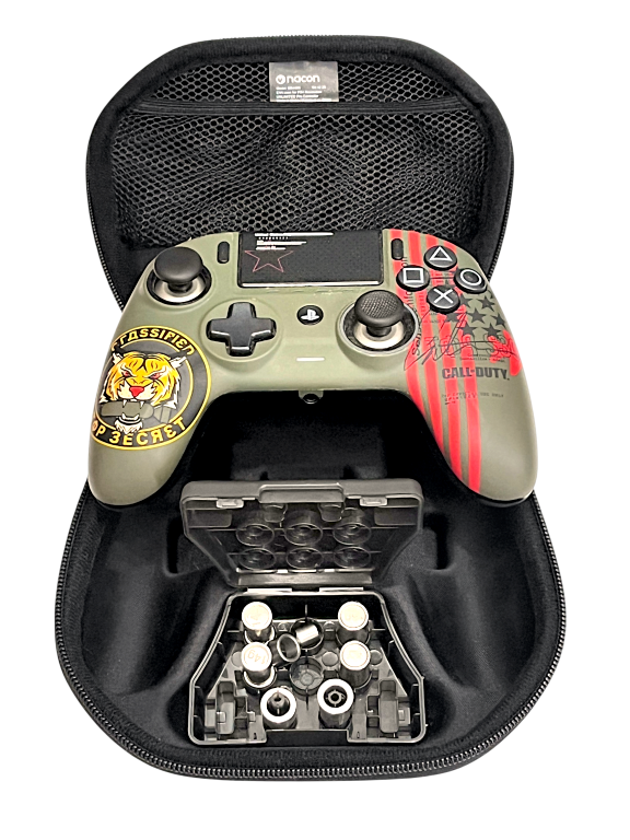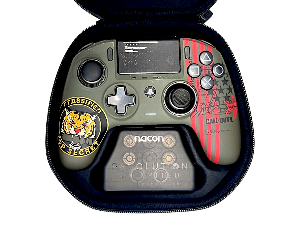 Nacon Revolution Unlimited Pro Controller- Call of Duty Cold War Edition (PS4). This preowned Scuf controller is in good condition and perfect working order and includes pictured case and accessories (many of the peripheral accessories are attached to the controller currently – refer photos front and back).