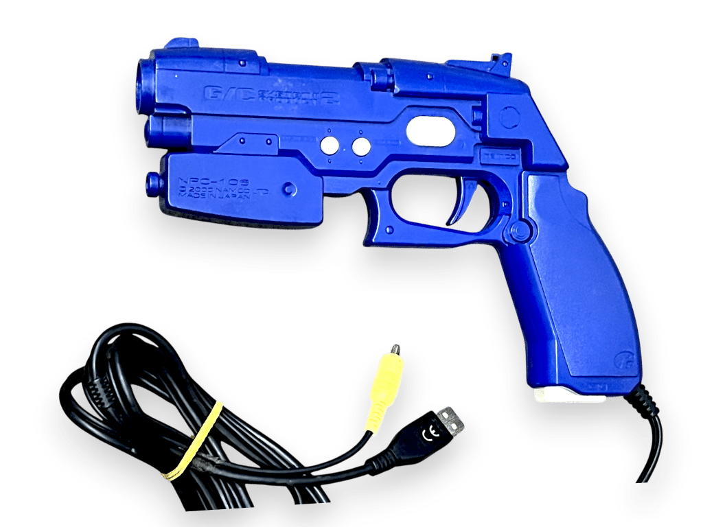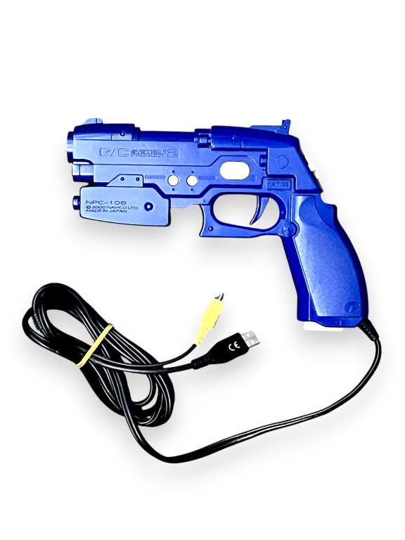 The Namco GunCon 2 is the official light gun controller designed for the PlayStation 2, built specifically for arcade-style shooting games. Featuring a solid, ergonomic design with responsive trigger action, directional buttons, and side controls, it delivers precise aiming and authentic arcade gameplay. This wired controller connects directly to the PS2 via USB and video pass-through, ensuring accurate screen tracking on compatible CRT displays. A must-have accessory for fans of classic rail shooters and light-gun arcade experiences.