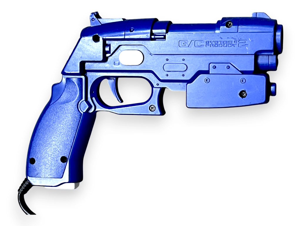 Namco GunCon 2 Light Gun (System Product 2 Model for playing SONY PS2 Shooter games such as Time Crisis 2 and Time Crisis 3 (games sold separately). This preowned authentic GunCon 2 is in good condition and perfect working order.