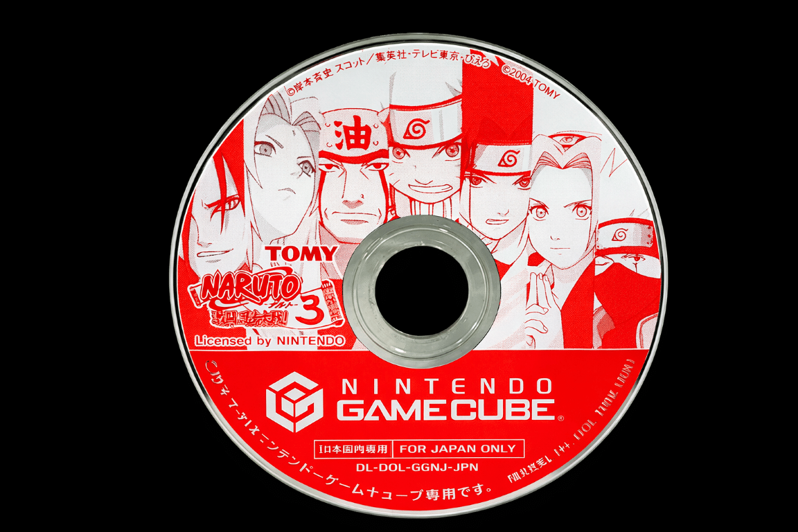 Naruto: Gekito Ninja Taisen! 3 (Nintendo GameCube). This pre-owned Japanese Nintendo GameCube game is in good condition it comes inside an empty blank case. Please note that the original case is not included here. The language is in Japanese instead of English. NTSC-J REGION GAME – REGION LOCKED so that the game disc only plays in Japanese GameCube consoles or New Zealand consoles that have been modified to play multi-region game discs.