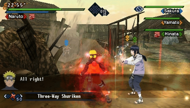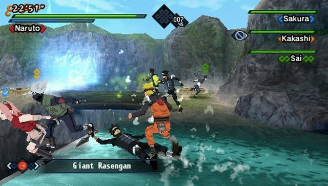 In a first for the series, NARUTO SHIPPUDEN: Kizuna Drive will invite players to launch themselves into four-player team action on PSP. Set in the Shippuden anime series universe and with a wealth of characters to choose from, including Naruto, Sakura, Kakashi, Shikamaru and many more, players will team up with up to three friends via Ad Hoc and work together to defeat enemies using tactical combinations of melee and Jutsu attacks. The real test will come when you face up to the big bosses, with ferocious battles in store against Shukaku and Kyubi.