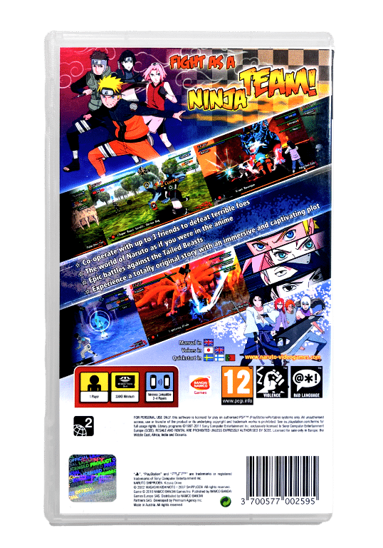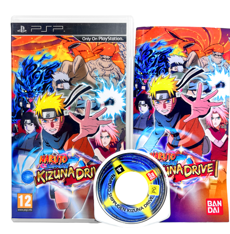 GENUINE ORIGINAL PRINT (non Platinum + non-Essentials) in excellent condition & 100% complete with contents: NARUTO SHIPPUDEN – Naruto Kizuna Drive for SONY PSP / PlayStation Portable. This preowned game is in superb condition and comes complete with original case, cover, manual / booklet, and game disc inside its miniature UMD case. The only imperfection I could find was a tiny plastic crack in the case, and this a purely cosmetic imperfection. All inner contents are sublime. Overall, a tidy and complete collector’s item.