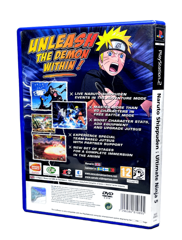 NARUTO SHIPPUDEN: NARUTO ULTIMATE NINJA 5 for SONY PlayStation 2 / PS2. This preowned game is in excellent condition – disc mint – and includes pictured case + cover + game disc.