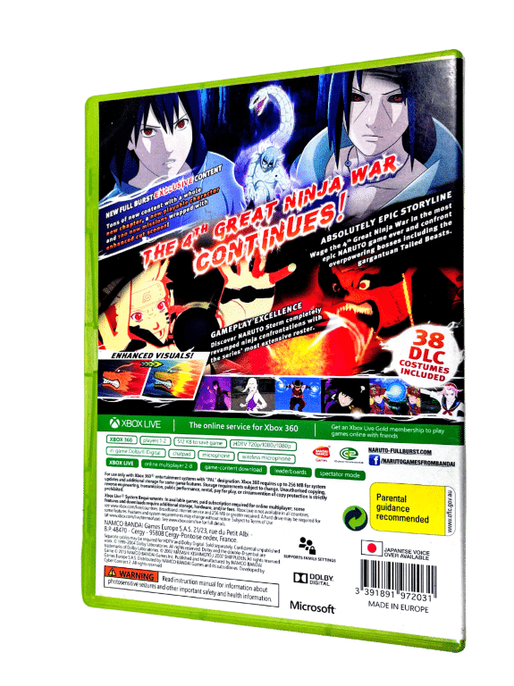 Naruto Shippuden Ultimate Ninja Storm 3 FULL BURST Edition for XBox 360. This preowned game comes is in excellent condition and includes case + cover + game disc. Please note that the manual is not included in this listing, but the game is self-explanatory, and the instructions are readily available online.