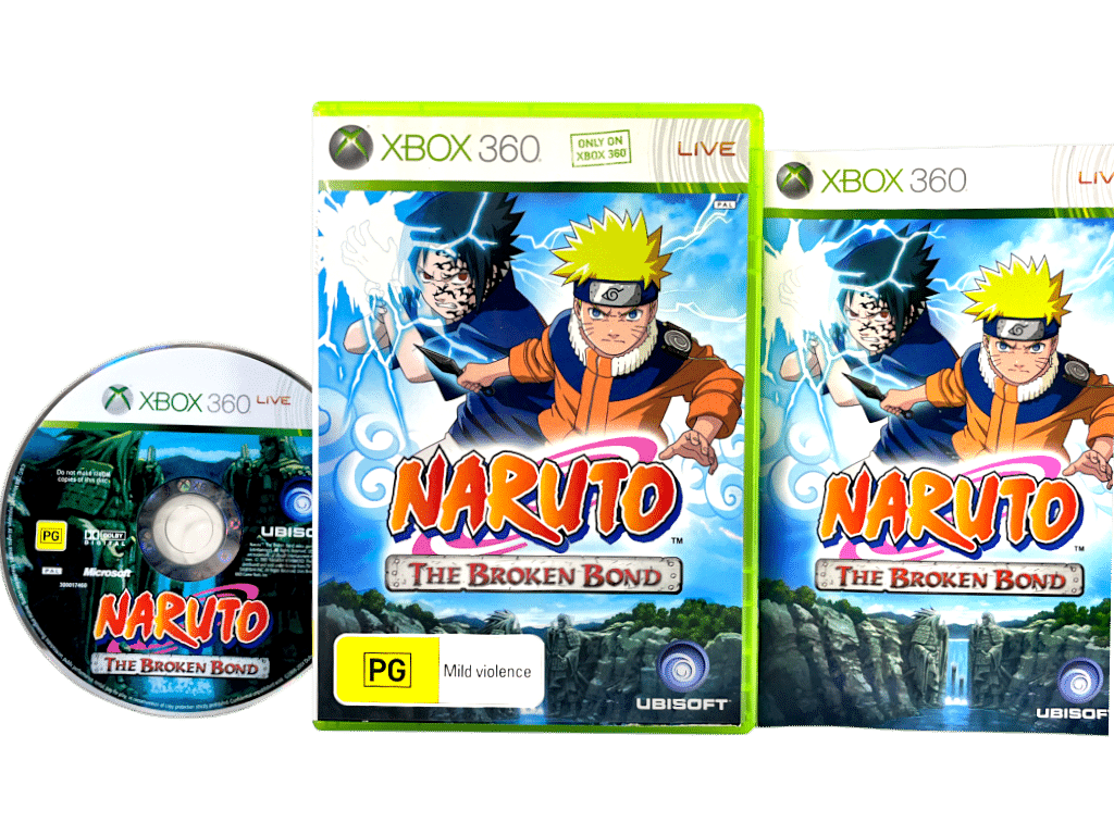 RARE & Collectible Official New Zealand Edition in Excellent Condition & 100% Complete with Contents: Naruto Shippuden The Broken Bond for XBox 360. This preowned game is in superb condition and is an AUTHENTIC NZ/AUS Print with the signature “PG” classification embedded in the cover art and on the game disc. The PAL region edition of this game is scarce enough, and this the official NZ print even more so. This edition comes complete with case, cover, manual / booklet, and game disc. This is a tidy and complete collector’s item.