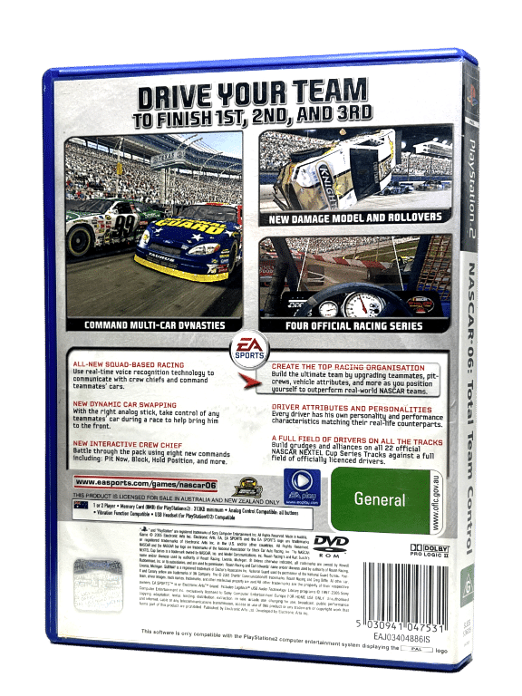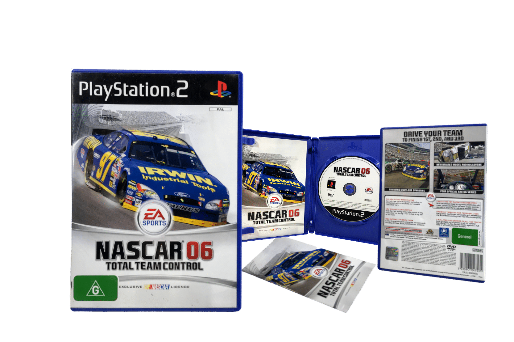 Excellent condition & 100% complete with contents: NASCAR 06 TOTAL TEAM CONTROL for SONY PlayStation 2 / PS2. This preowned game is in excellent condition and comes complete with case, cover, manual / booklet each in very tidy condition.