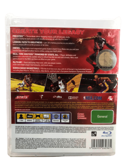 NBA 2K14 for SONY PlayStation 3 / PS3. This preowned game disc is in excellent condition and includes original case + cover + manual / booklet. Case has a small plastic crack and some fine laminate plastic wear, but this purely cosmetic, and each of the internal contents are fantastic.