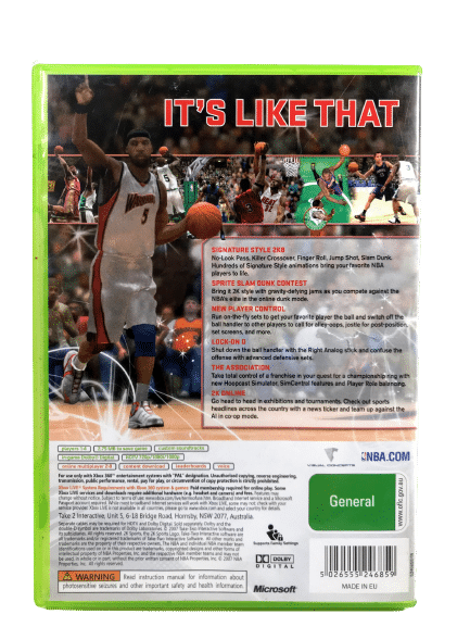 Rare Authentic New Zealand Xbox 360 Edition with Official NZ “General” Classification embedded in in the cover art: NBA 2K8 / NBA ’08 / NBA 08 / NBA 2K08 for Xbox 360. This preowned authentic NZ Edition is in excellent condition, with case, cover, and game disc. A small spot of paint wear on top of the disc, but this is an extremely minor imperfection which does not hinder game play in the slightest.