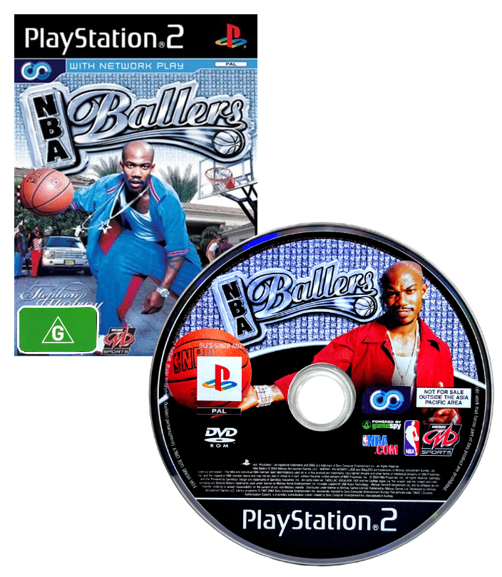 NBA BALLERS for SONY PlayStation 2 / PS2. This preowned game disc is in good playing condition with light superficial scratches which do not hinder performance or gameplay in any way. Disc comes inside an empty blank case. Please note that the original case is NOT included.