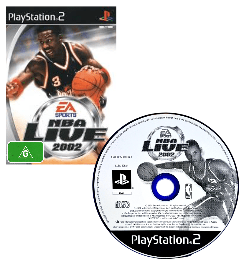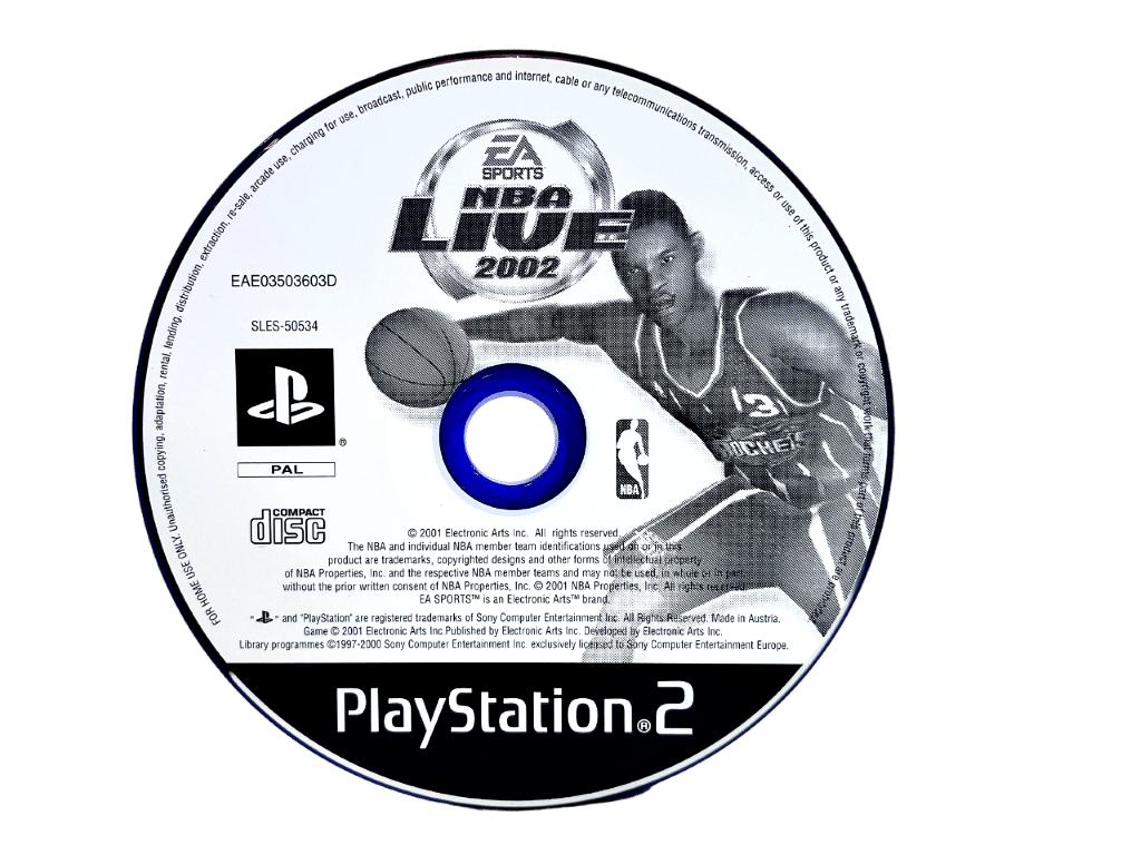 NBA LIVE 2002 / NBA 02 / NBA LIVE 2K2 / NBA LIVE ’02 for SONY PlayStation 2 / PS2. This preowned game disc is in excellent condition. Disc comes inside an empty blank case. Please note that the original case is NOT included.