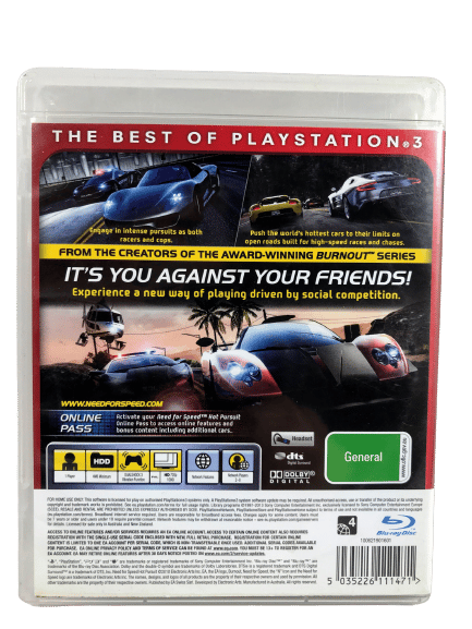 NEED FOR SPEED HOT PURSUIT – the original Hot Pursuit edition for SONY PlayStation 3 / PS3. This preowned game is in excellent condition and comes complete with with case, cover, manual / booklet and game disc.