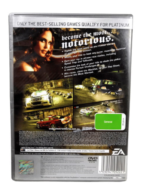 Need for Speed MOST WANTED for SONY PlayStation 2 / PS2. Pre-owned game includes case cover and game disc (light scratches on the disc, but the game has been tested and plays perfectly well) and comes with a warranty. Please note that the instruction manual is not included here, but the game is self-explanatory, and the instructions are readily available online.