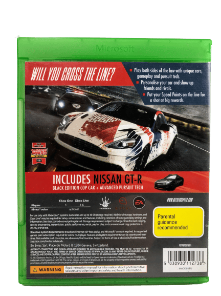 Excellent condition & 100% complete with contents: Need for Speed Rivals for Xbox One. This preowned game is in superb condition and comes complete with case, cover, manual / booklet, and game disc. The only imperfection I could find anywhere was one tiny plastic crack on the case, and this purely cosmetic. Cover is the authentic NZ Standard Edition without the “Ultimate Cop Pack” advertising strip on the cover. Refer images 2 – 3. A tidy and complete collector’s item.