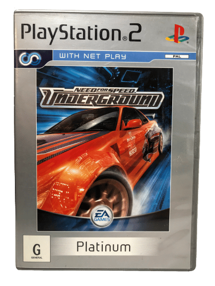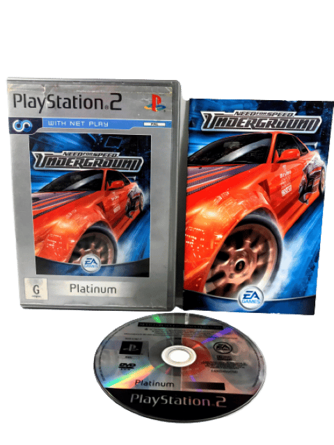 Good condition and 100% complete with contents: NEED FOR SPEED UNDERGROUND for SONY PlayStation 2 / PS2. This preowned game disc is in Good condition with only mildest of markings and faint scratches which do not hinder gameplay or performance in the slightest. This game comes complete with genuine Platinum Edition case, cover, instruction manual / booklet, and game disc.