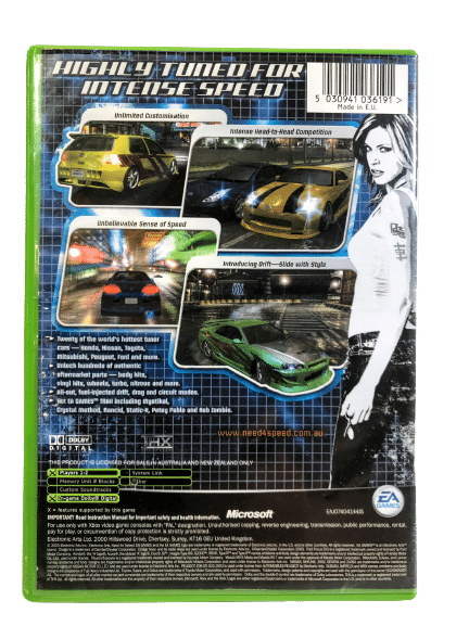 Authentic Original Print in good condition & 100% complete with contents: NEED FOR SPEED UNDERGROUND for Original XBox. This preowned game is in good condition with only the faintest of surface scratches, which do not hinder gameplay or performance in any way, this game comes complete with case, cover, manual / booklet, and game disc.