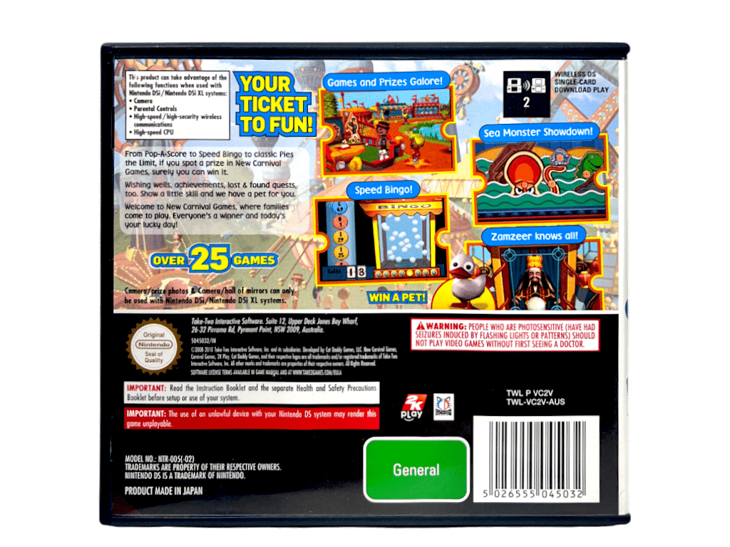 Excellent Condition & 100% complete with contents: NEW CARNIVAL GAMES for NINTENDO DS. This preowned game is in superb condition and comes complete with case + cover + manual / booklet + game cartridge.