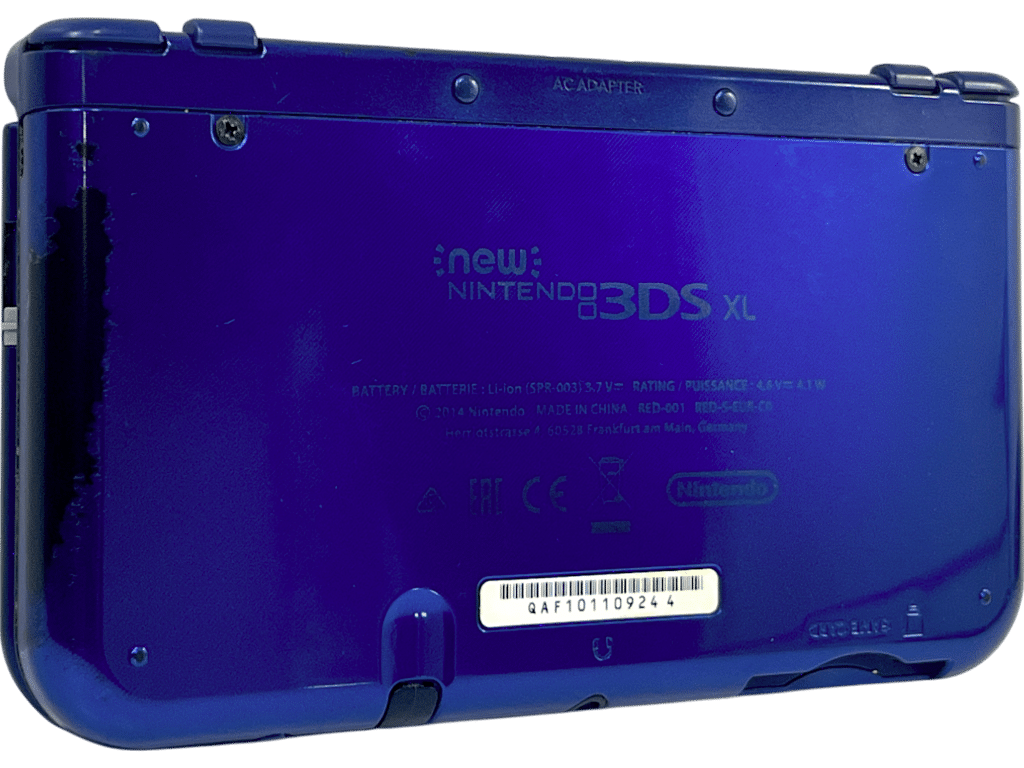 RARE FIND: The NEWEST 3DS Console: “New” NINTENDO 3DS XL METALLIC BLUE in Excellent Condition. This preowned authentic “new” Nintendo 3XL console includes matching “New” Nintendo 3DS XL Removeable Stylus Pen + 3DS USB Wall Charger + Internal 4GB Memory Card + Genuine Pokemon 3DS XL Zip Case. This preowned “New” Nintendo 3DS XL Console is in excellent condition and perfect working order. The gaming interfaces are superb, protected by screen protector. The top of the console is also tidy. The bottom is good with one small patch of paint wear from contact with table tops as the only notable imperfection.