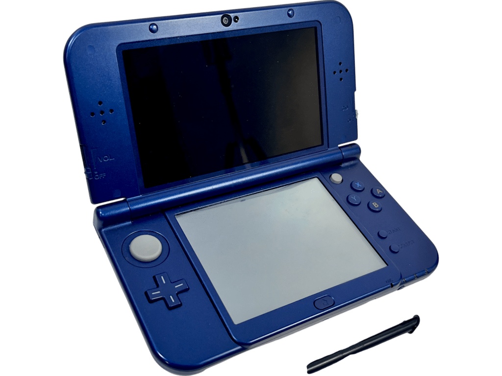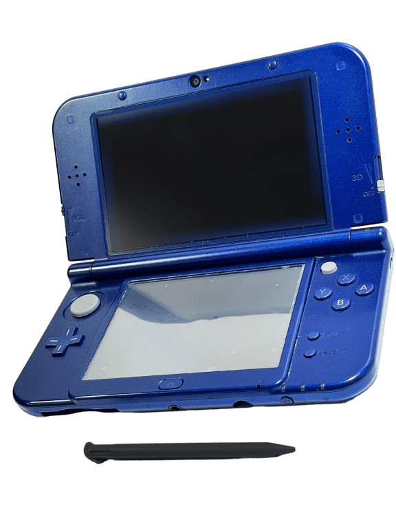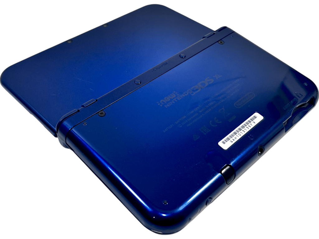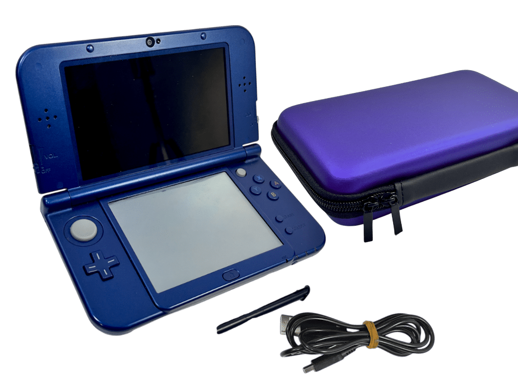 RARE FIND: The NEWEST 3DS Console: “New” NINTENDO 3DS XL METALLIC BLUE. This preowned authentic “new” Nintendo 3XL console includes matching “New” Nintendo 3DS XL Removeable Stylus Pen + 3DS USB Wall Charger + Internal 4GB Memory Card + BLACK Zip Case (differs to pictured blue case). This preowned “New” Nintendo 3DS XL Console is in good condition and perfect working order. The gaming interfaces are each Excellent. The bottom of the console is also tidy with mild superficial markings and faint surface scratches as purely cosmetic imperfections from contact with table tops and stylus touch screen operation.