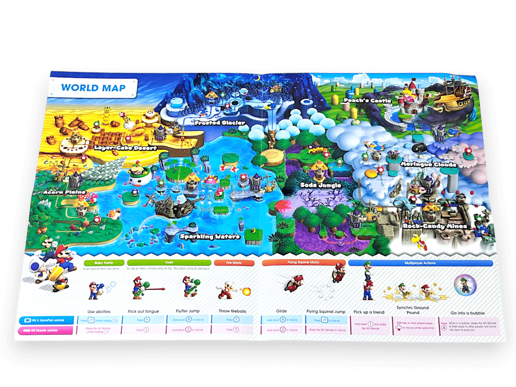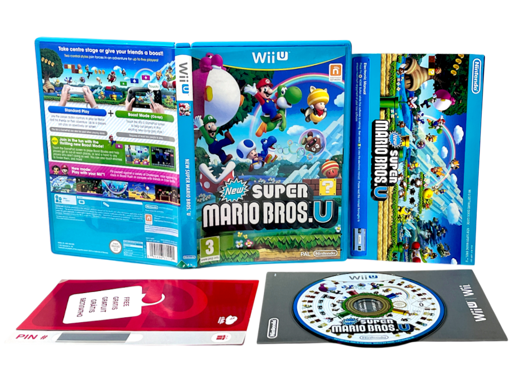 Excellent Condition & 100% complete with contents, including large foldout Instructional Colour Poster: NEW SUPER MARIO BROS. U for Nintendo Wii U. This preowned game comes complete case, cover, Colour Instructional Poster / Manual, booklet, Nintendo club card (still new and unscratched), and game disc. A tidy and complete collector’s item.