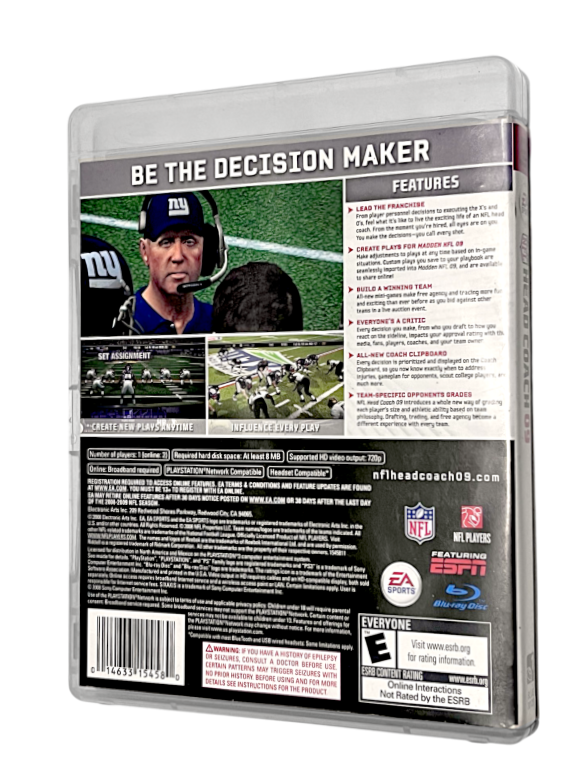 NFL Head Coach 09 (PS3) *EXCELLENT & COMPLETE*. This preowned SONY PlayStation 3 game is in excellent condition and coimplete with case + cover + instruction manual / booklet + game disc.