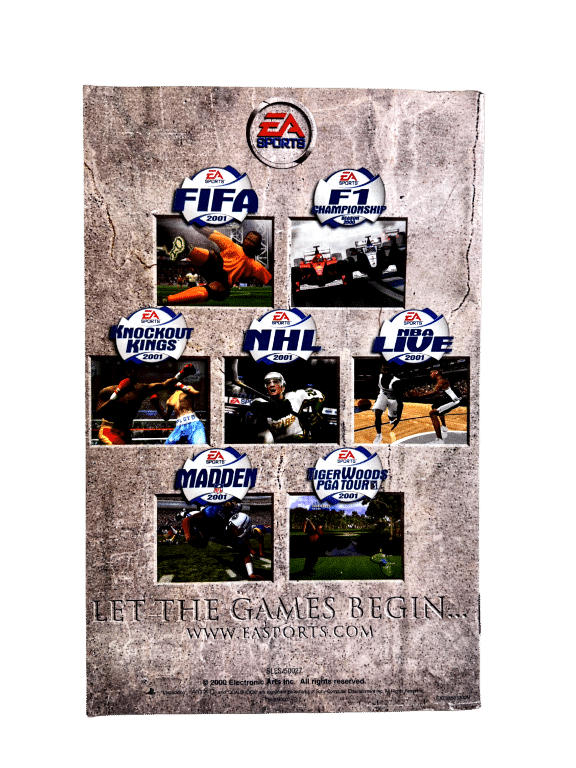 NHL 2001 puts you on the ice, literally. Import your face (or perhaps your favorite celebrity’s) onto the body of a customizable hockey player and then go on to create your team’s logo, jersey, and color scheme. But this isn’t just some dress-up game. This game sports the official NHL license, which means you’ve got access to the NHL’s 30 traditional and expansion teams. In addition, there are 20 international clubs to play with. All teams have updated rosters that are looking to check, pass, and score their way toward the Stanley Cup. NHL 2001 uses motion-capture technology to display the moves of professional players, as well as an improved artificial-intelligence system that continually recalculates the offensive and defensive strategies. In addition, each game features the play-by-play and commentary of veteran broadcasters Bill Clement and Jim Hughson. With five different play modes spanning quick play to career, NHL 2001 is ready to take you on for either a short hustle or a long haul.