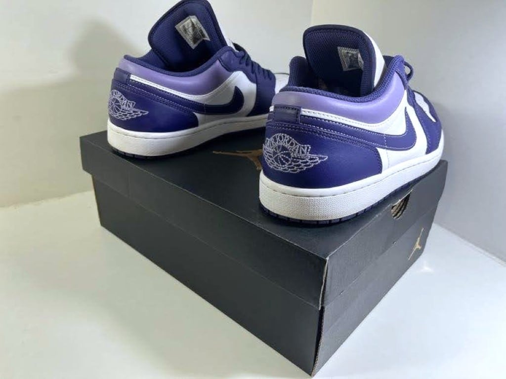 NIKE AIR JORDAN Air 1 Low Sky J LT Purple Size UK 10 / EUR 45 / BR 43 / 29cm Shoes in excellent condition. Worn briefly and still near new as pictured.Collectible range – vaulted and fetching a high price on EBAY. Grab a bargain and add these limited Edition Air Jordans to your wardrobe today!