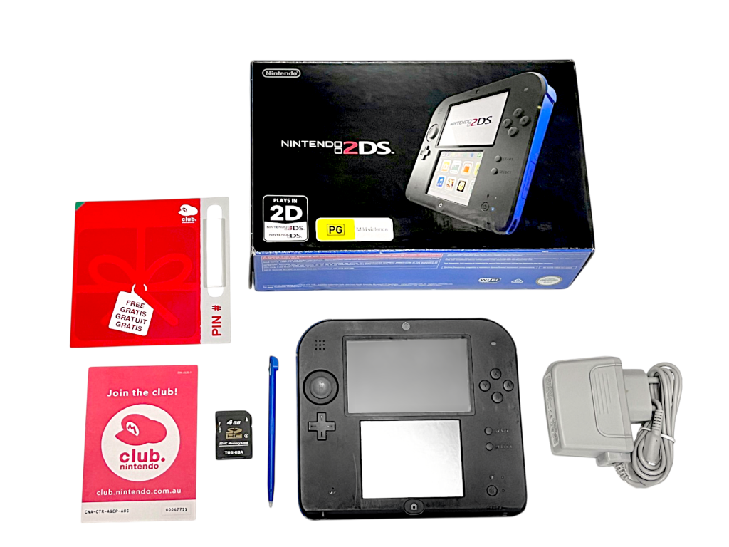 DESCRIPTION: The Nintendo 2DS is a handheld gaming system that plays Nintendo 3DS and DS games in a sturdy, non-folding design. Featuring a large dual-screen layout and access to a massive library of titles, it offers great value for portable gaming. This boxed version is ideal for collectors or those wanting a complete set. With long battery life and simple controls, the 2DS is perfect for both younger players and nostalgic gamers.