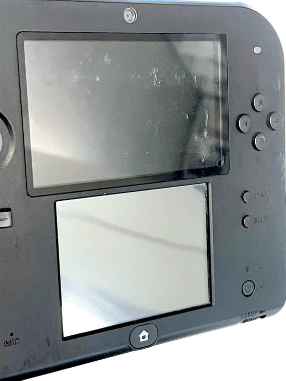 Nintendo 2DS Console (Boxed). This pre-owned official Nintendo 2DS console is in good condition and perfect working order. The back of the console is excellent, as is the bottom screen. The top screen has some markings and light scratches pictured, but these are purely cosmetic and do not hinder its perfect performance in any way.