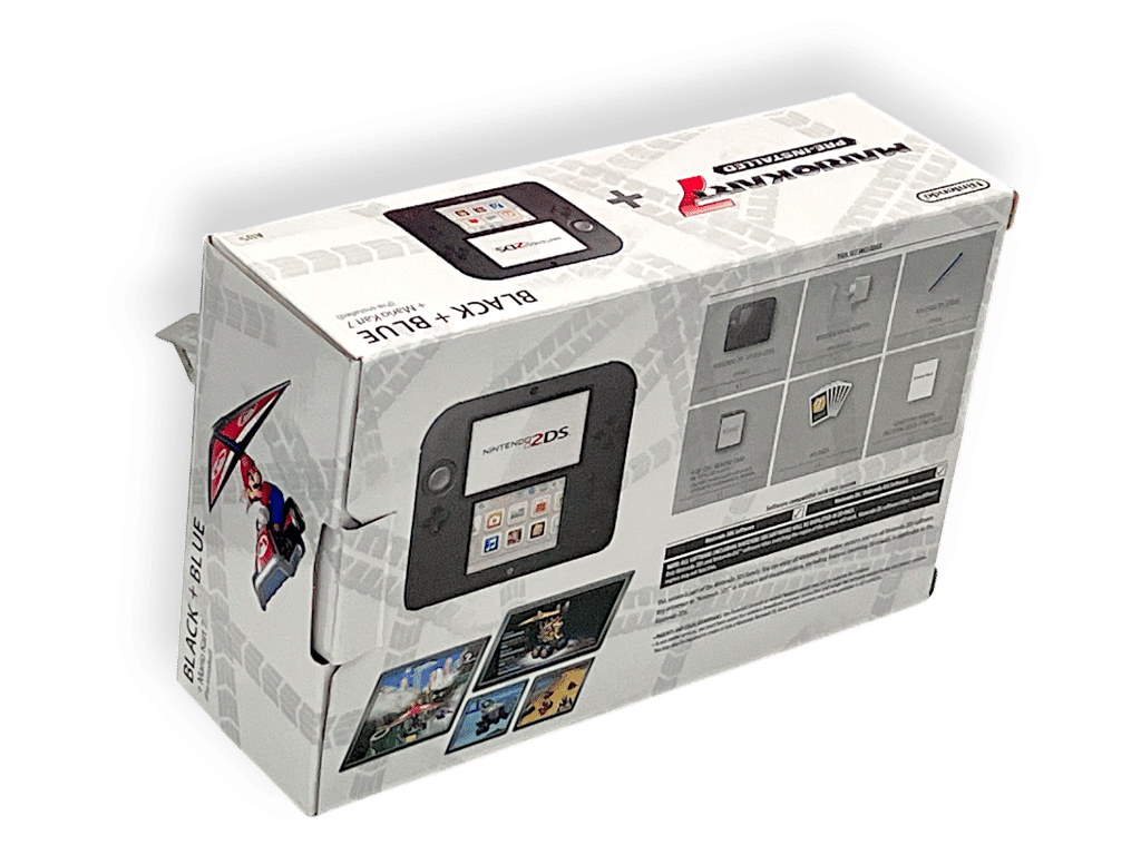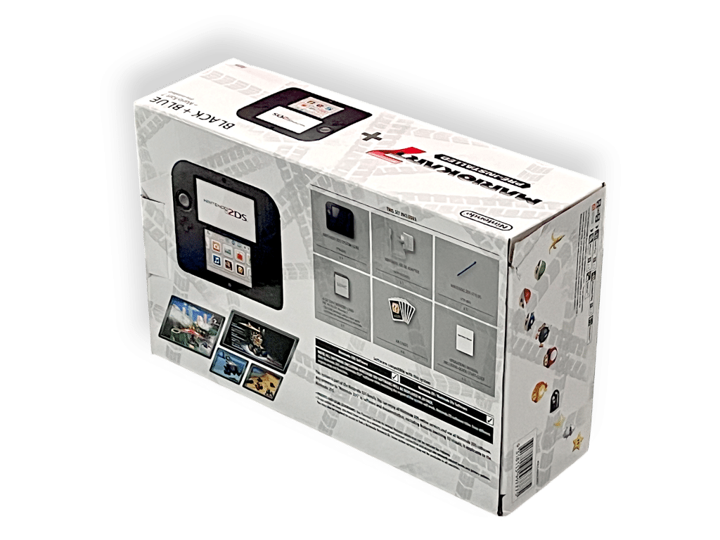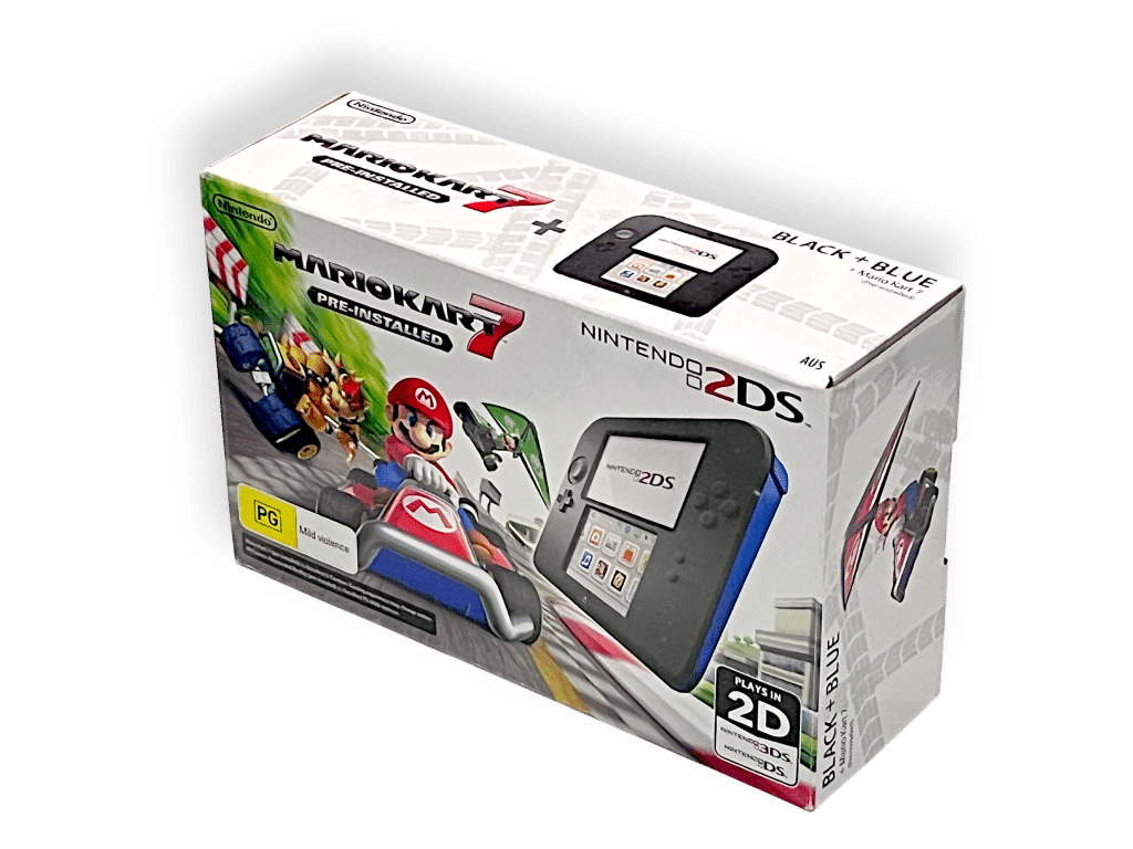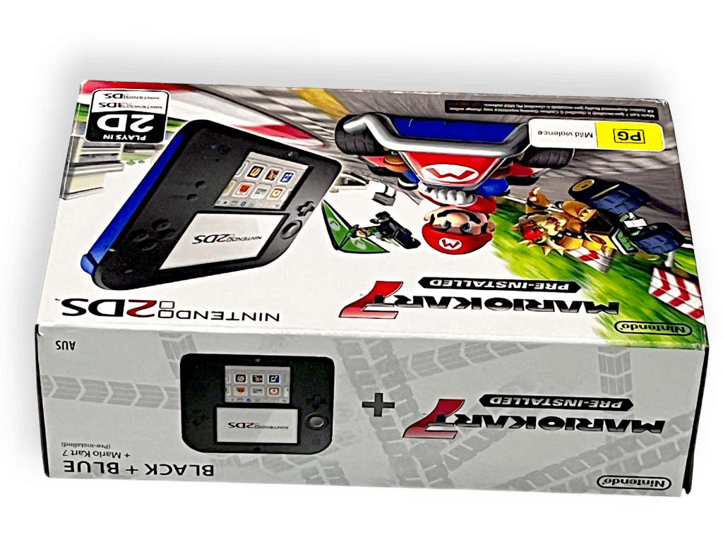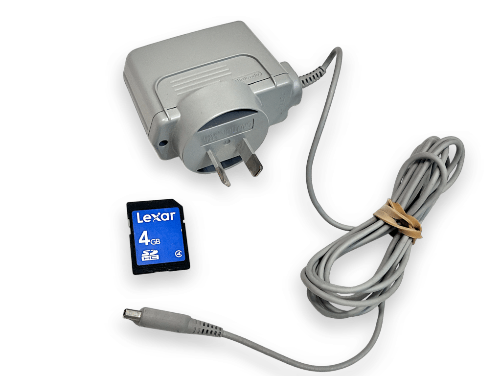 Nintendo 2DS Console *BOXED* with Genuine Charger + SD Card. This pre-owned Nintendo 2DS console includes pictured box instruction manual and authentic Nintendo 3DS wall charger.