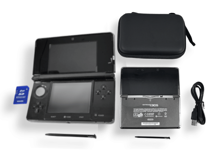 The original 2011 Nintendo 3DS is the first model in Nintendo’s stereoscopic 3D handheld lineup, introducing glasses-free 3D gaming and a host of innovative features that pushed the boundaries of portable entertainment. Compact, stylish, and packed with technology, the launch-model 3DS became one of Nintendo’s most iconic handhelds.