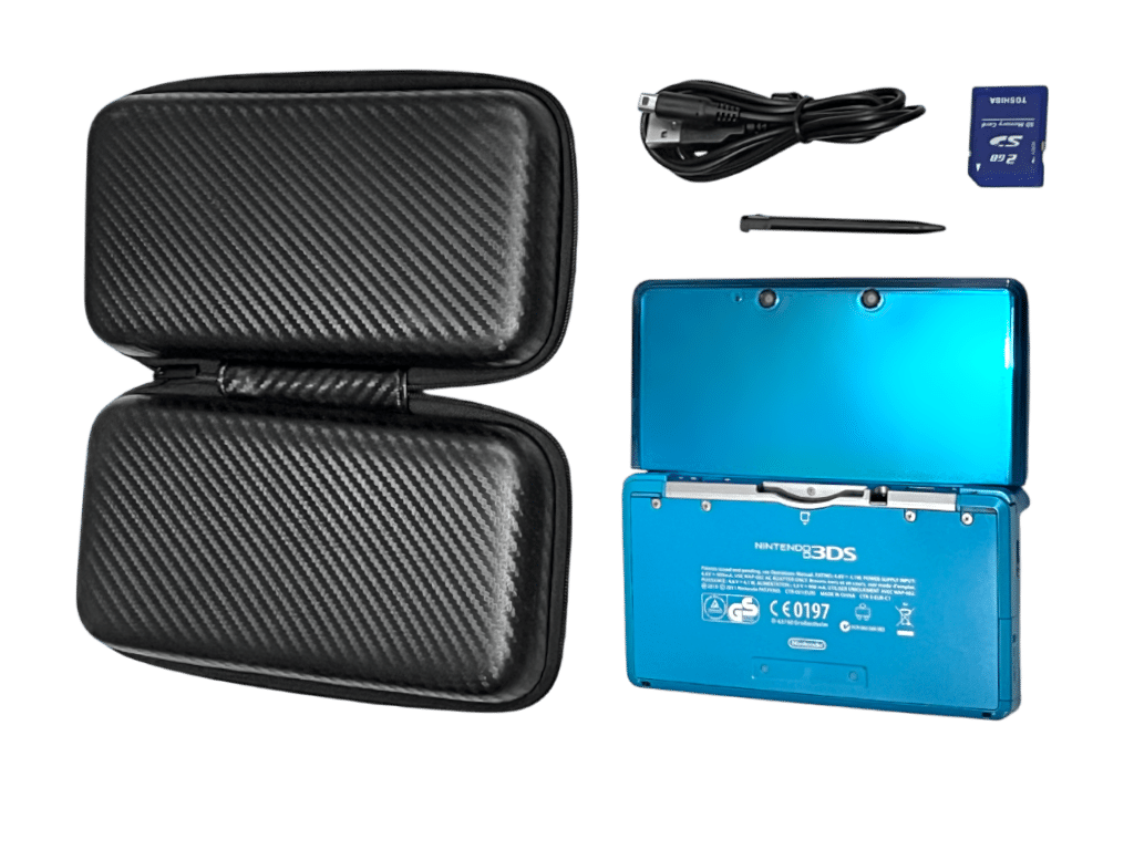 FOR SALE: Genuine Metallic Teal / Metallic Aqua Nintendo 3DS console + Stylus Pen + USB 3DS Charger + 2GB SD Card + Zip Console Caser. This preowned Nintendo 3DS is in good condition and perfect working order. PLAYS BOTH 3DS AND NDS GAMES!