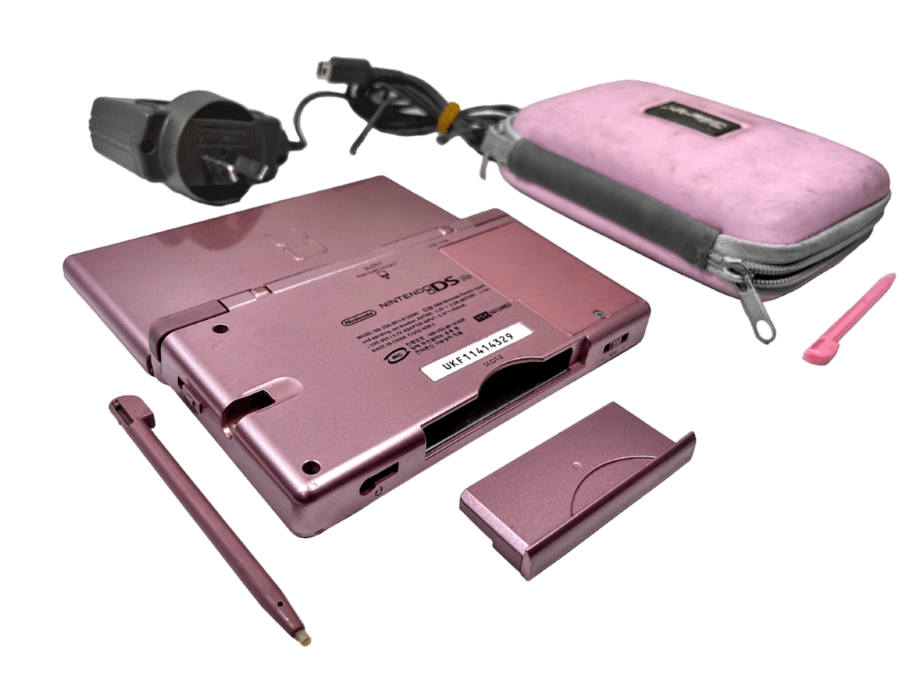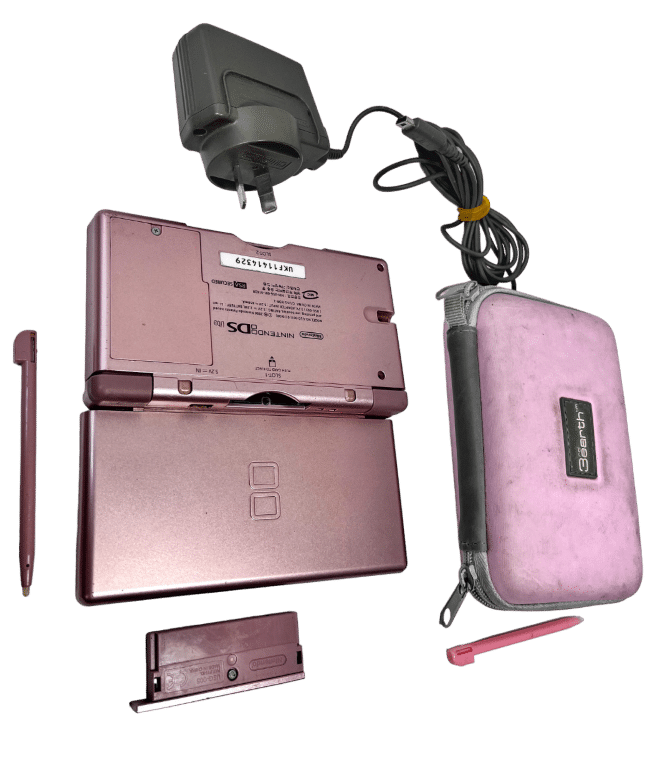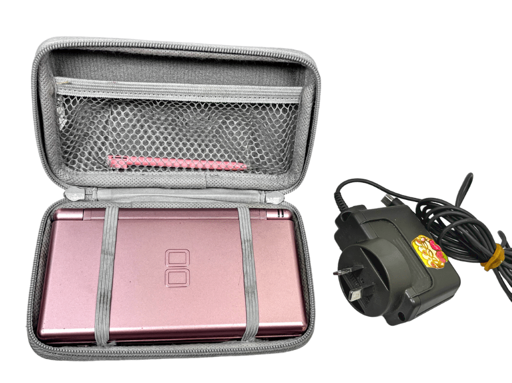 RARE & COLLECTIBLE GENUINE ROSE GOLD METALLIC Nintendo DS Lite Console. This preowned genuine Nintendo console is in very good condition and perfect working order, and comes complete with original Matching Rose Gold Stylus + Matching Rose Gold Game Boy Advance Plastic Guard + Genuine Nintendo DS Lite Wall Charger. Also included is an additional pink stylus pen and a pink DS Lite zip carry case. A beautiful collector’s console.