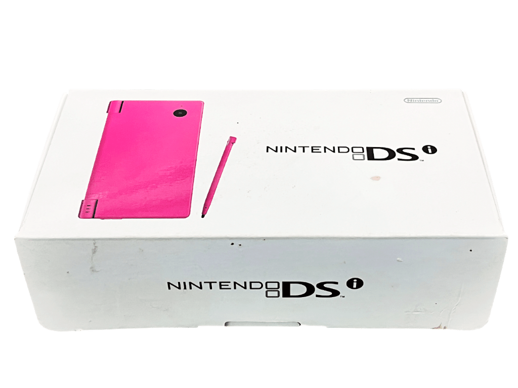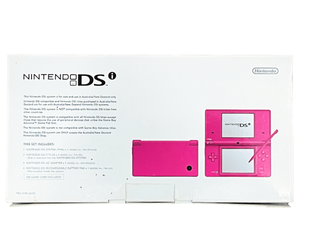 RARE FIND: PINK Nintendo DSi Console complete with Box + Charger + Internal Partitioners + Instructions / Booklets. This preowned Nintendo DSi Console is in Excellent Condition as pictured. Console includes matching Pink DSi Stylus Pen + Genuine Nintendo AC Wall Charger + brand new 8GB SD Card (MicroSD card + SD card adapter) – all inside Original Box with Booklets + Manuals + Promotional Material. Console excellent, with the screens having only light markings and cosmetic signs of use. Box good with some minor shelf wear consistent with storage. All inner paperwork in MINT condition. Striking in appearance, this Nintendo Dsi comes as pictured.