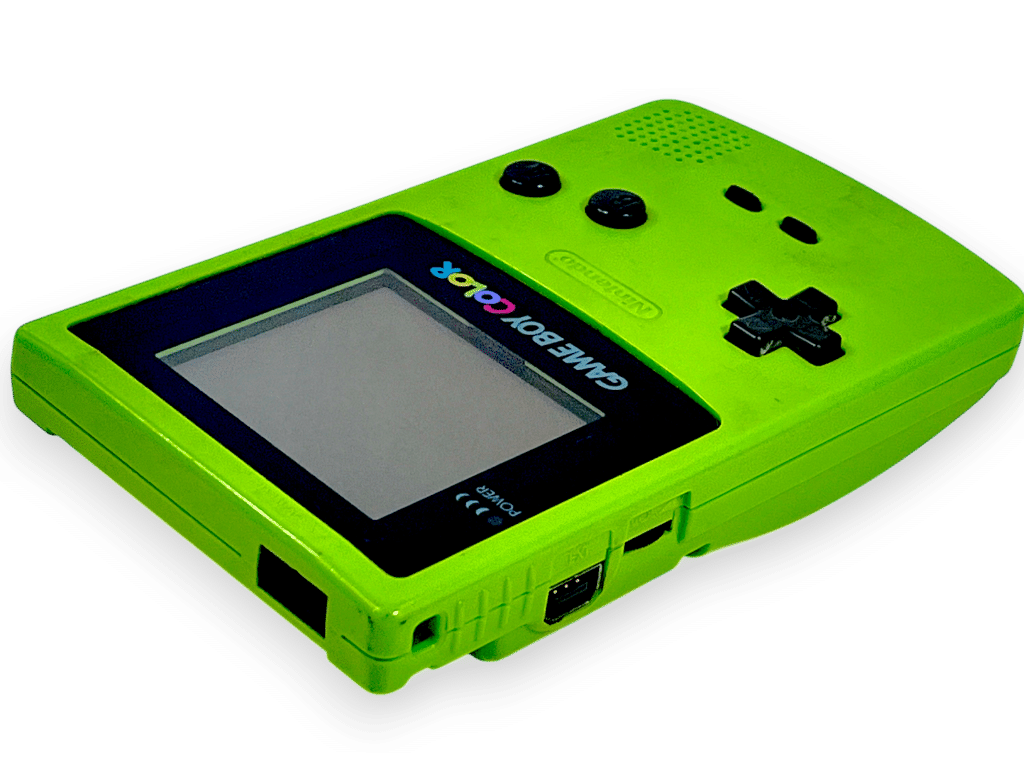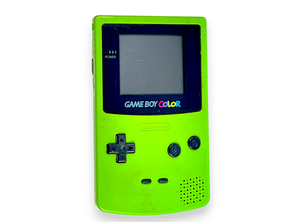 Lime Green Game Boy Color Console. This preowned Nintendo Game Boy Colour Console is in good condition and perfect working order. Mild cosmetic imperfections. Refer photographs. Includes battery hatch and takes 2 x AA batteries (batteries sold separately).