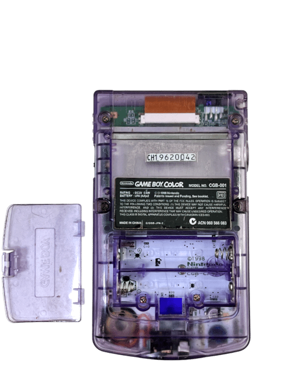 Nintendo Game Boy Color (Translucent Purple) Console. This preowned Nintendo Gameboy Colour / Game Boy Colour console is in good condition and perfect working order. Screen excellent and the body with minor markings and surface imperfections. Powered by 2 x AA Batteries (batteries not included). Refer images.