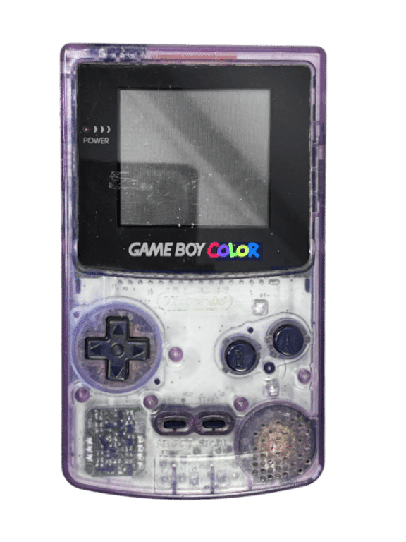 Nintendo Game Boy Color (Translucent Purple) Console. This preowned Nintendo Gameboy Colour / Game Boy Colour console is in good condition and perfect working order. The screen has some very fine markings and surface scratches, but these are purely cosmetic and do not affect its performance in any way. Powered by 2 x AA Batteries (batteries not included). Refer images.