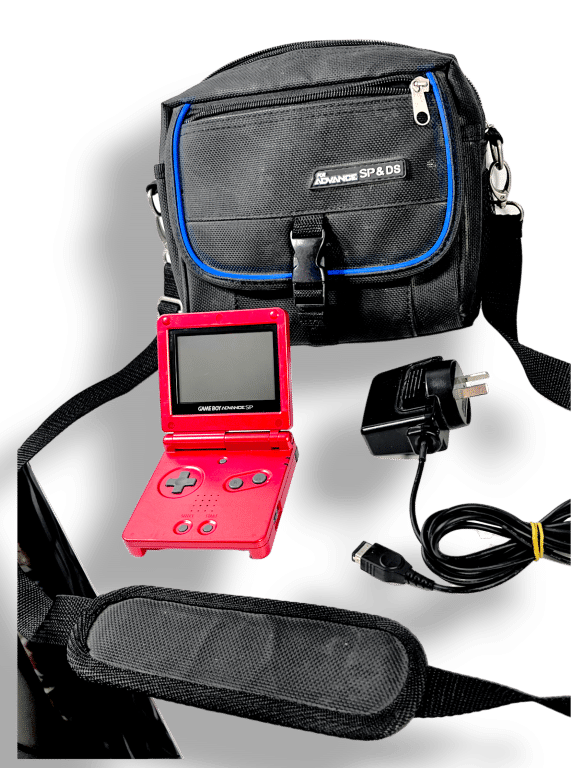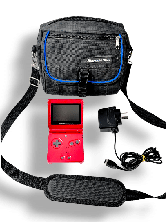 NINTENDO GameBoy Advance SP (Game Boy Advance SP) Console + Genuine Nintendo Game Boy Advance SP AC Wall Charger + Quality Game Boy Advance SP Zip Travel Case (large with separate pockets for console / charger / games & accessories). This preowned GBA console is in good condition and perfect working order. A valuable bundle with the included Official Nintendo Gameboy Advance AC Charger and quality Zip Travel Case. Refer photographs.