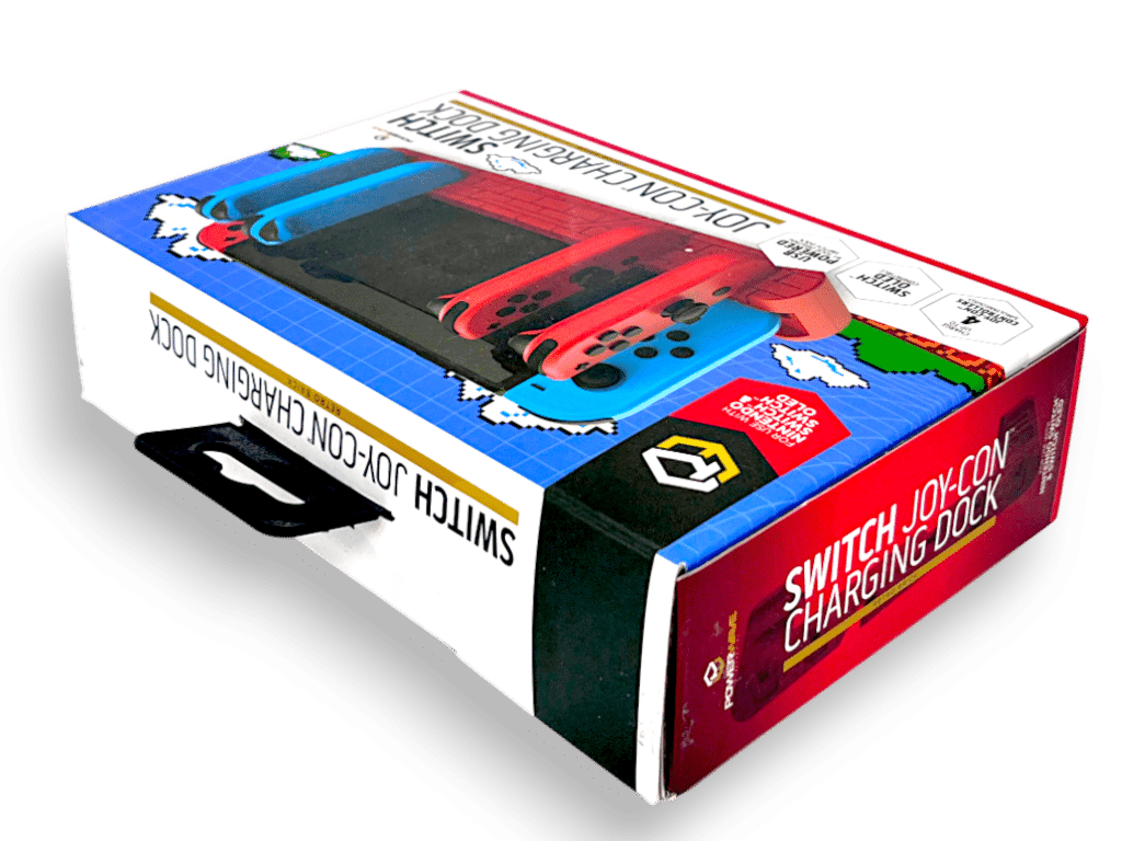Charges up to four Joy-Con controllers simultaneously (two per side).