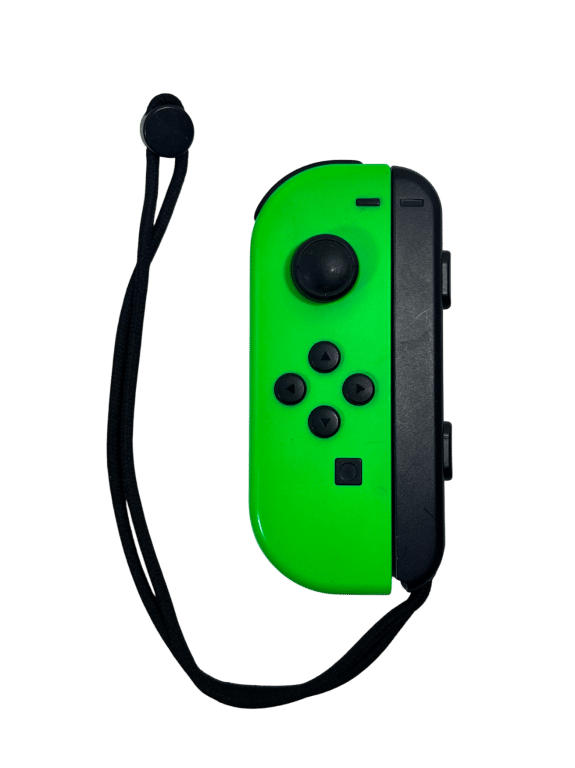 Genuine Nintendo Switch Joy-Con Controller – Neon Green, with strap. This preowned Nintendo Switch Joy Con Controller is in good condition and perfect working order.