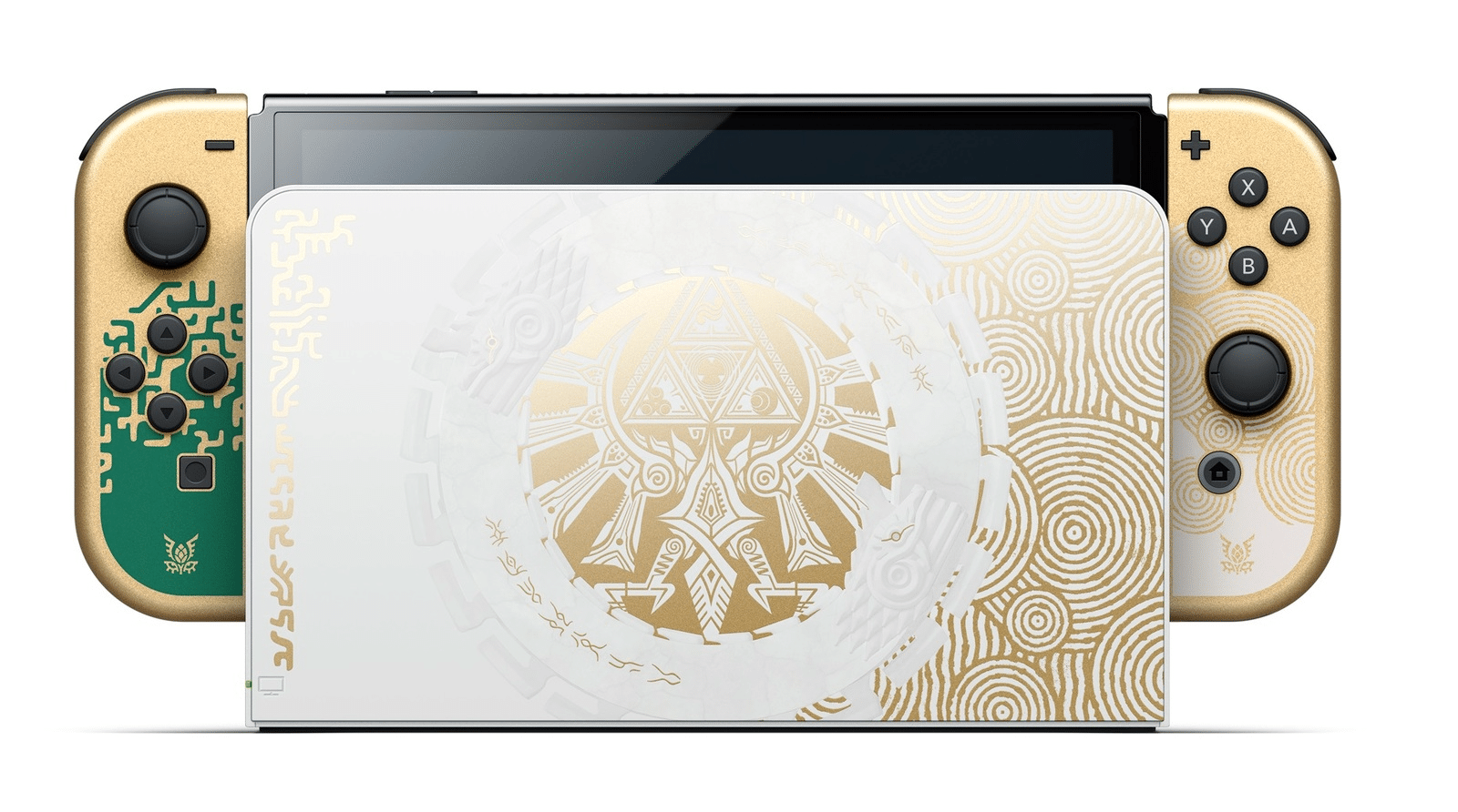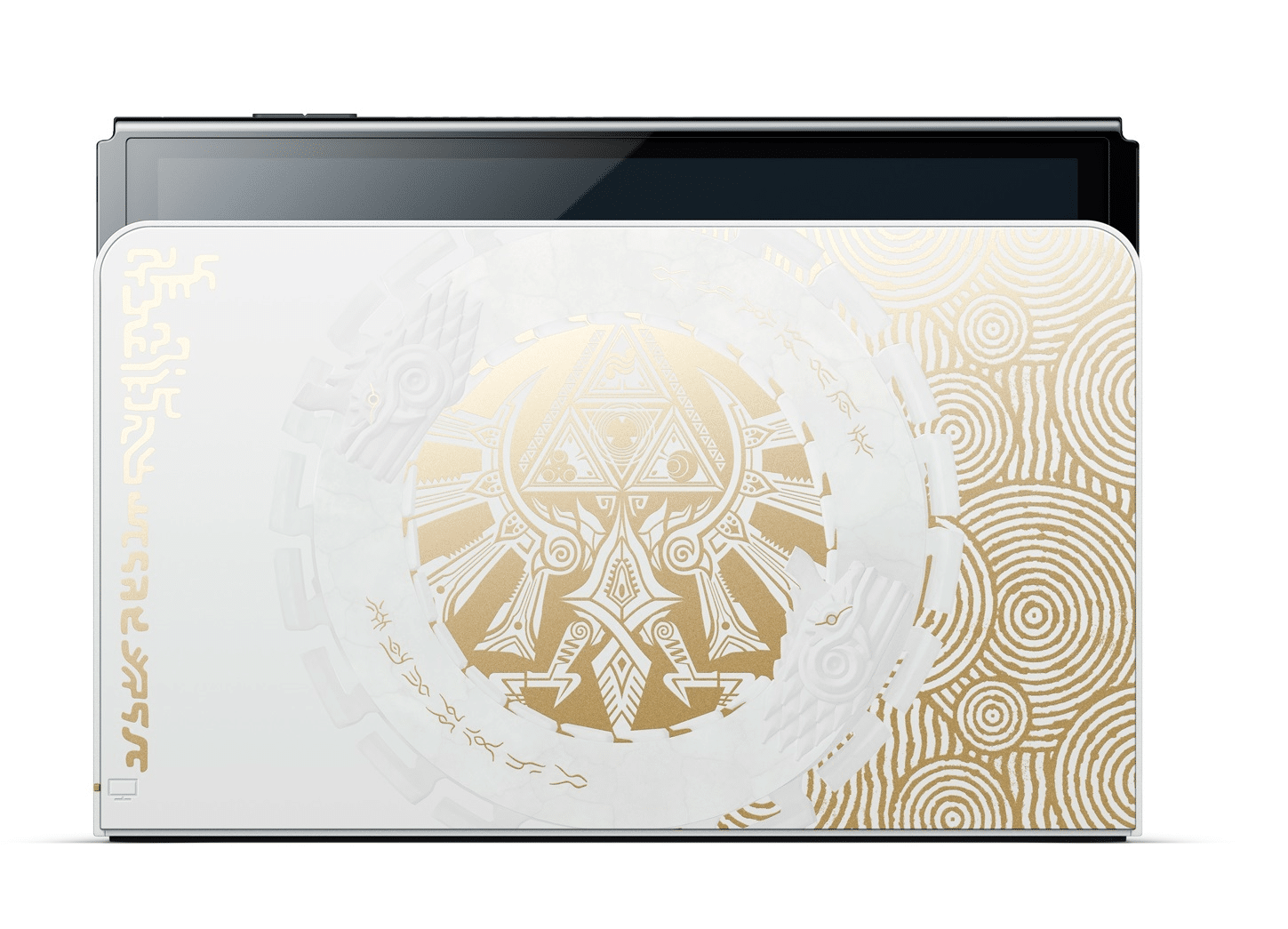 This sleek new edition bears a design which appears in The Legend of Zelda: Tears of the Kingdom, including the familiar Hylian Crest from the Legend of Zelda series on the front of the dock.